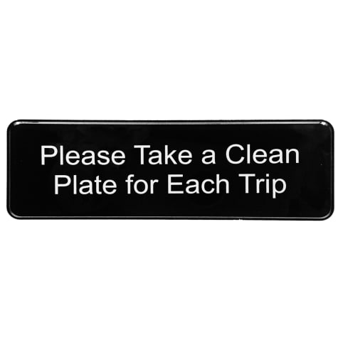 This 3" x 9" Please Take A Clean Plate for Each Trip sign from TableCraft is self‐adhesive and helps keep patrons well informed.