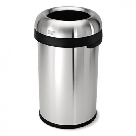 simplehuman® largest bullet open can has a larger 10.5 inch opening that makes it easy to scrape food off trays or toll in large items like pizza boxes. They heavy-gauge stainless steel construction, lift-off lid, and extra-large capacity.