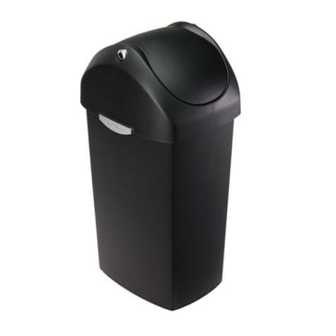 simplehuman® swing lid plastic can has a perfectly balanced swing lid with a heavy-duty hinged that opens easily and then gently swings back into place, A quick-release hinge lets you remove the lid in a snap for easy cleaning.
