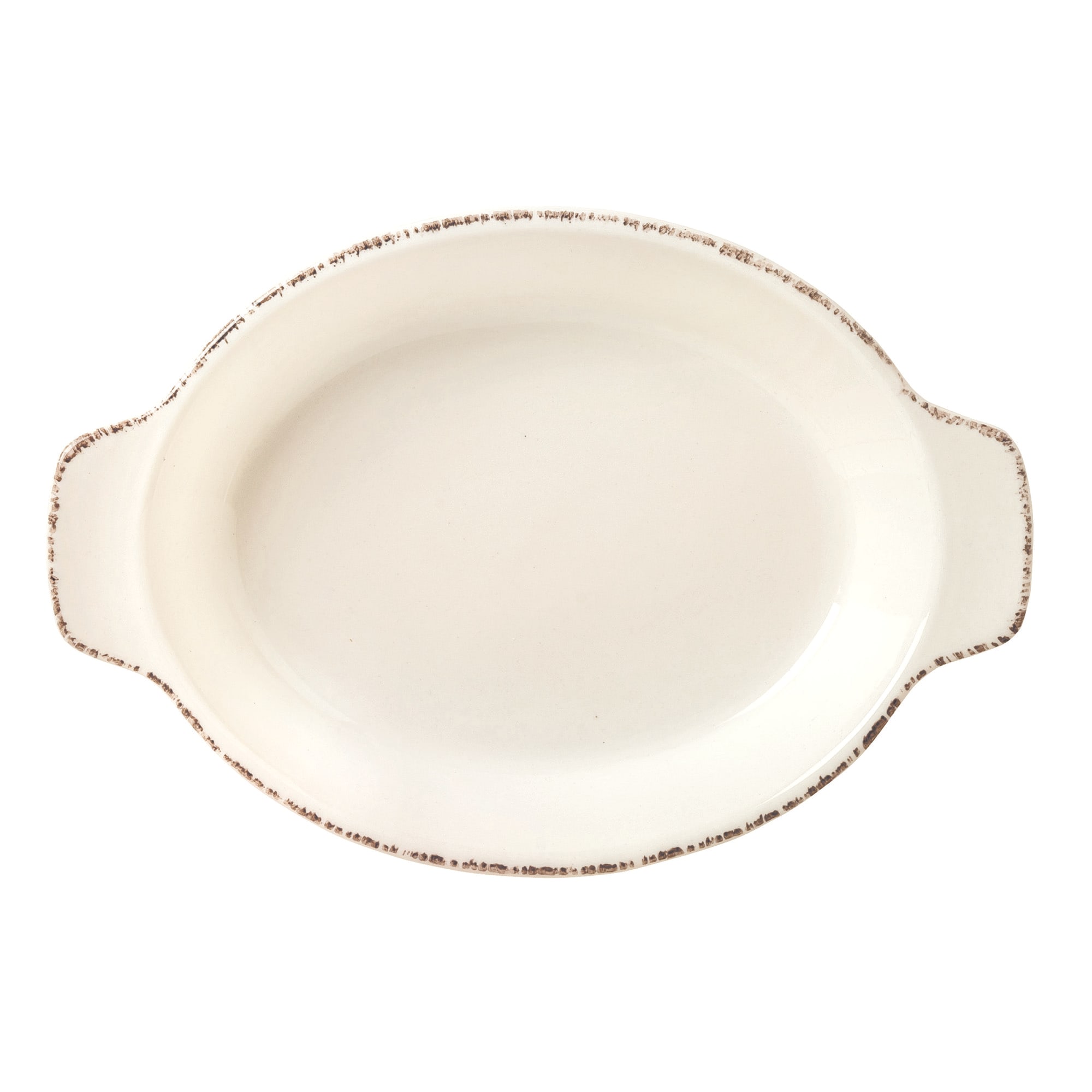 This new Farmhouse melamine oval skillet provides superior durability makes it ideal for use outdoors or in high‐volume environments. You can create fresh takes on farm‐to‐table presentations and can be paired with the Dulcet or Hedonite for even more possibilities. Microban technology that supports a 99.9% cleaner surface. Made of melamine but looks like porcelain.