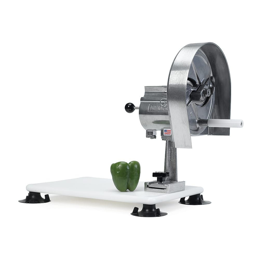 This adjustable vegetable slicer from Nemco is designed to make fast and easy work of slicing most fruits and vegetables.