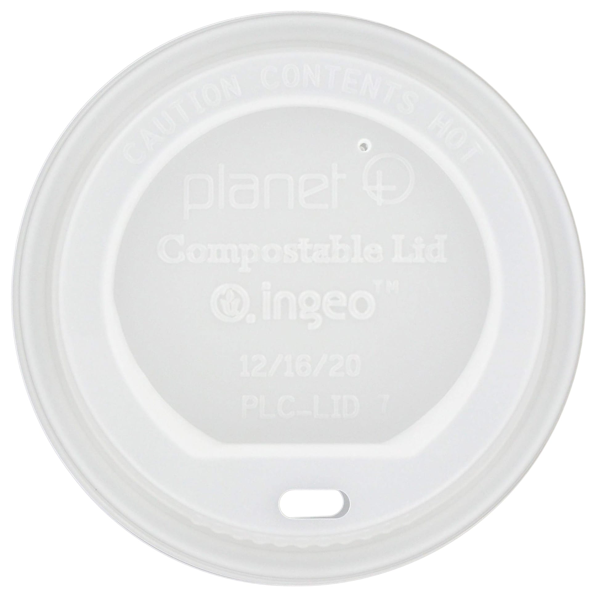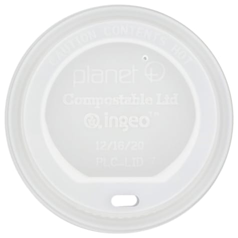 This compostable lid fits 12 to 20 ounce Planet+ cups, model PLC‐12, PLC‐16, and PLC‐20.