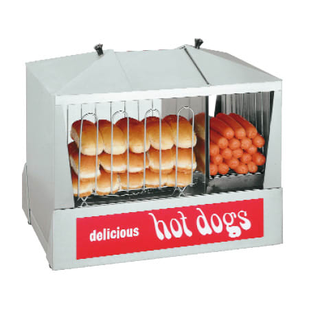 This Star® Classic Steamro, Jr. Hot Dog Steamer holds approximately 130 hot dogs and 30‐40 buns. It is great for snack bars, stadiums, convention centers, and more. Its side‐by‐side design provides more control of heat and humidity, and it has an adjustable thermostat. Its large 6 Quart water pan allows for all day steaming. It has scratch‐resistant graphics and full view tempered glass.