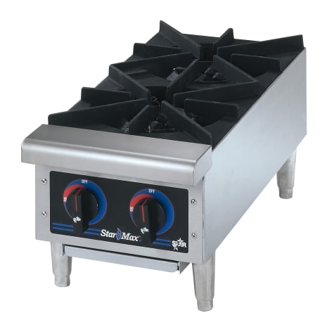 This Star® Star‐Max® Hot Plate is designed for years of reliable cooking performance. It has two burners, operating at 50,000 total BTU. It has heavy‐duty metal knobs and cast iron grates, and uses natural gas. A removable crumb tray allows for easy cleaning.