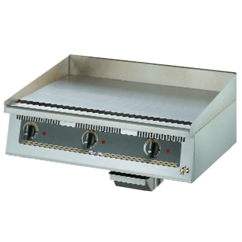 This Star® Ultra‐Max® Electric Griddle is a reliable, efficient way to cook a variety of foods. It features a 1" thick polished steel plate cooking surface, and has a temperature range of 150°F to 450°F. Each 12" section has an individual temperature control, allowing you to cook multiple products at once. It is finished with a rear and side splash guard, and a grease trough.