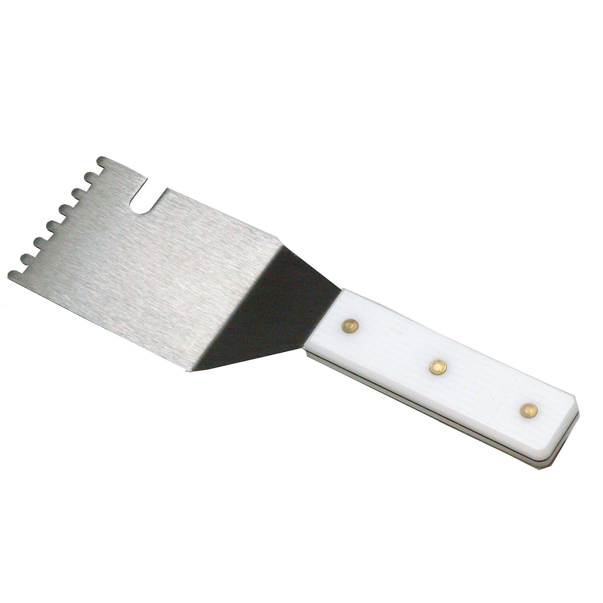 This Star® Grooved Spatula can be used with their grooved sandwich grills. Its design makes it easy to scrape off the plates.