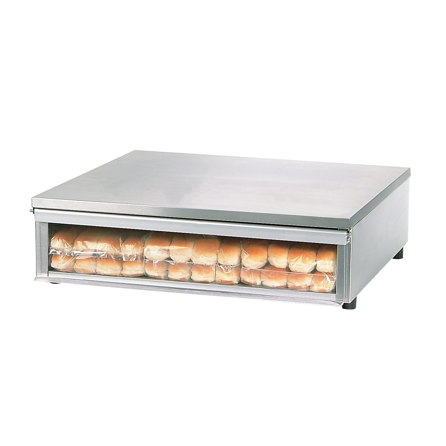 This Star® Grill‐Max® Bun Box is a low profile storage space for wrapped or unwrapped buns. It can be used on its own, or with Grill‐Max® Roller Grills. It is made from stainless steel and has a clear plexiglass door.