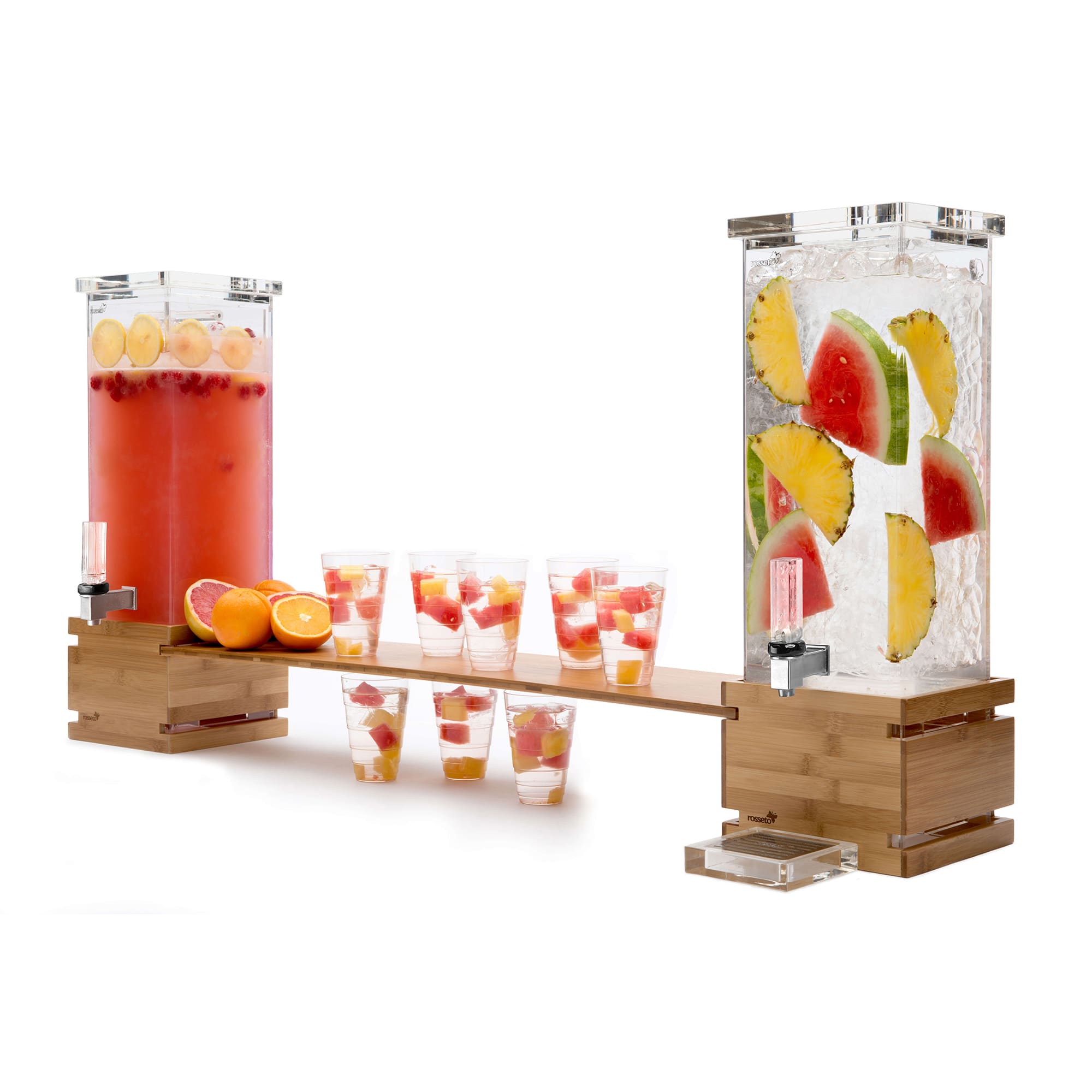 This Bamboo Beverage Station from Rosseto® will enhance the look of your beverage serving area! The dispensers are made of solid high quality acrylic with a unique base.