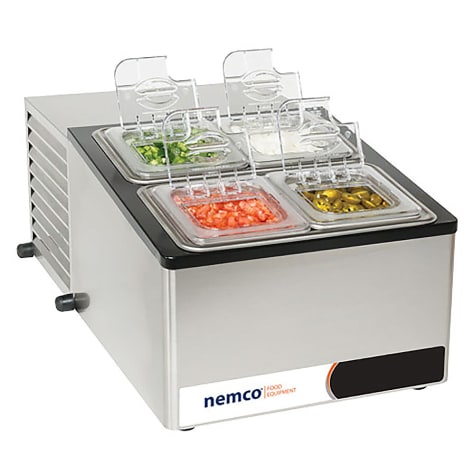This Cold Condiment Station has all the features you need to consistently hold chilled, even potentially hazardous, foods at safe temperatures. Unlike any other countertop chilling option, Nemco's Station features electronic thermostat control with a digital display that allows for quick, easy and accurate temperature adjustment - no turning screw on mechanical thermostats, and no guesswork. The Cold Condiment Station stands up to the unforgiving use of customer self-serve - even in the busiest C-stores, serving lines and operations.