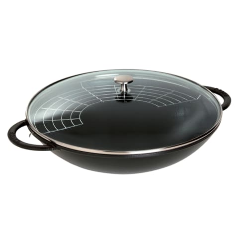 Staub USA 1313923 Black Matte Cast Iron Wok With Stainless Steel Rack