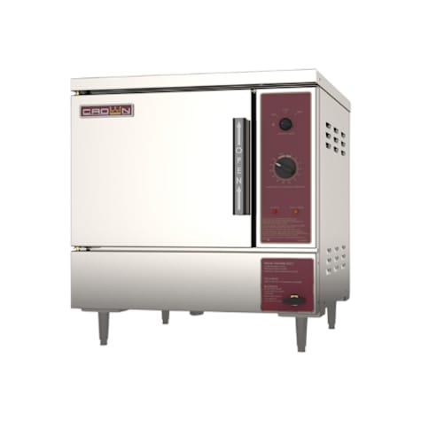 This versatile 4-pan electric countertop steamer from Crown Steam Group features a 4-position cooking mode selector, allowing for soft poach, traditional steam, and high heat steam settings, with temperatures up to 230°F (110°C). The unit includes a 60-minute timer and a clean water reservoir system, ensuring efficient and consistent cooking. Constructed with durable stainless steel, this unit is built to withstand the demands of a busy kitchen. Other features like a hands-free door latch and adjustable leveling feet, make it a practical and reliable choice for professional chefs.