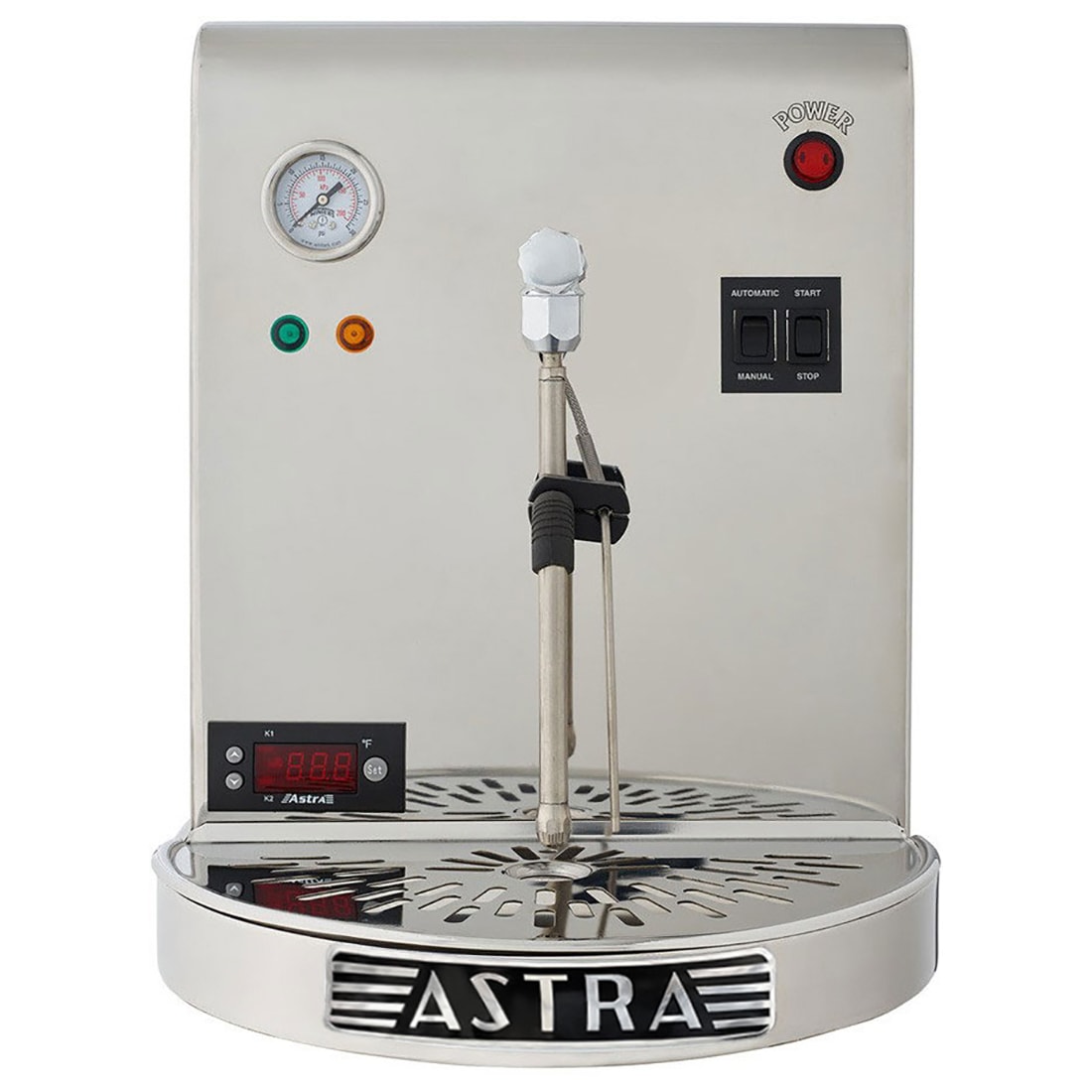 The Astra STA1300 includes a 2.6 liter copper boiler with low water safety system and alarm. A thermocoupled, cool-touch stainless steel steam wand provides automatic temperature control and continuous steam, ensuring quick recovery between drinks. Additionally, a manual operation switch on the front panel gives you full control whenever needed. All of the STA1300's high-quality, US-standard components are enclosed in an attractive stainless-steel frame.