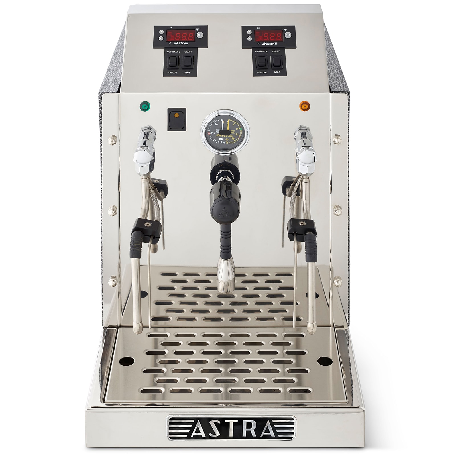 The Astra STA1800 includes a 4.2 liter copper boiler with automatic water fill functionality to keep your machine running smoothly. Two automatic steam wands can be programmed and operated independently & turn off when drink reaches programmed temperature. The thermocoupled, cool-touch stainless steel steam wands provide automatic temperature control and continuous steam, ensuring quick recovery between drinks. Additionally, a manual operation switch on the front panel gives you full control whenever needed. All of the STA1800's high-quality, US-standard components are enclosed in an attractive stainless-steel frame.