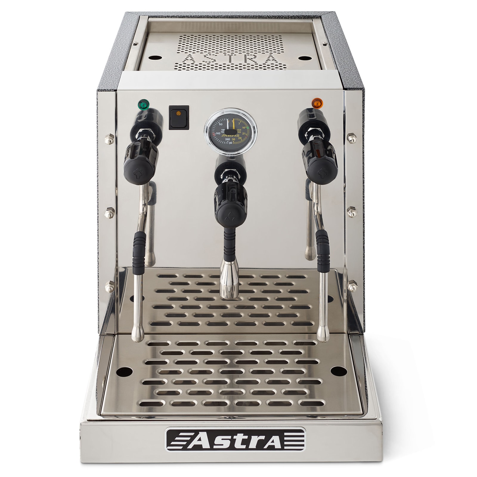 The Astra STS4800 includes two steam wands and a 7.0 liter copper boiler with automatic water fill functionality to keep your machine running smoothly. Double steam wands are engaged by turning the knob either on or off. All of the STS4800's high-quality, US standard components are enclosed in an attractive stainless-steel frame.