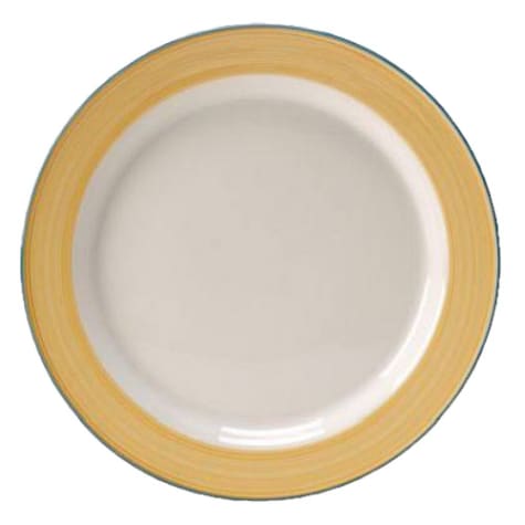 Featuring the wide, light yellow band of the Rio Yellow dinnerware collection, this 8 plate is chip resistant and microwave and dishwasher safe.