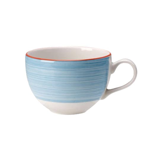 This low cup holds 8 ounces and has the pale blue body of the Performance Rio Blue dinnerware collection.