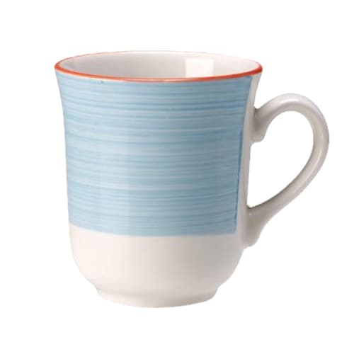 Serve coffee, tea or other hot beverages with this 10 ounce club mug from Steelite. It is part of the Performance Rio Blue Collection and features a blue band around the edge. This mug has a lifetime edge chip warranty.
