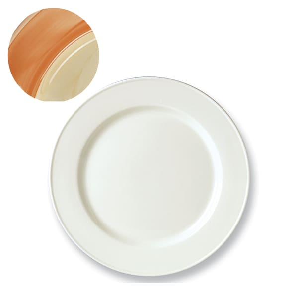 This Performance Naturals Paprika 8" Slimline plate has a rustic brushstroke effect on the rim that's warm and inviting.