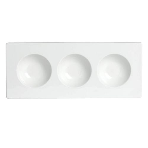 Folio by Patra 6302P267 White Rectangular 3 Well Sorbet Dish - 12 / CS