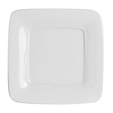 This porcelain square plate from Steelite is 8" on each side and is part of the Parentheses Collection by Crucial Detail. The white color will blend with any dining decor and is perfect for use in restaurants or banquet facilities.