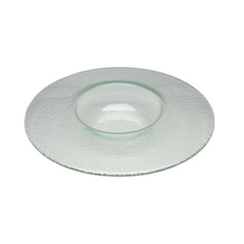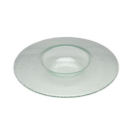 This Creations frosted glass plate appears to float on your table. This plate has a 5" well that holds 8 ounces and can be used to serve desserts or appetizers.