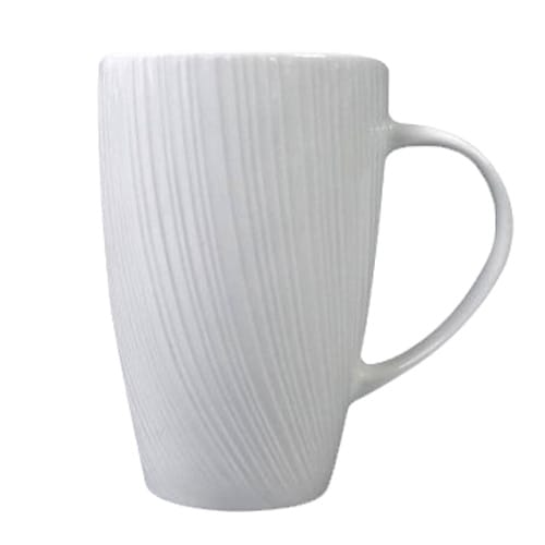 Serve a large cup of hot chocolate or coffee in this beautifully embossed cup. This 12 ounce mug is covered by a lifetime warranty against edge chipping.