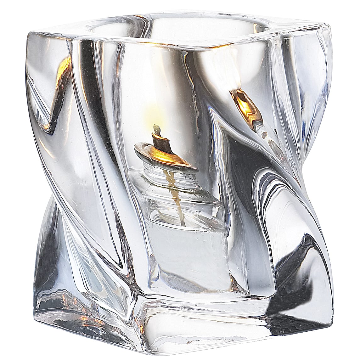 This Sterno Products® Lennox glass lamp features a playful twist design and is great for outdoor use.