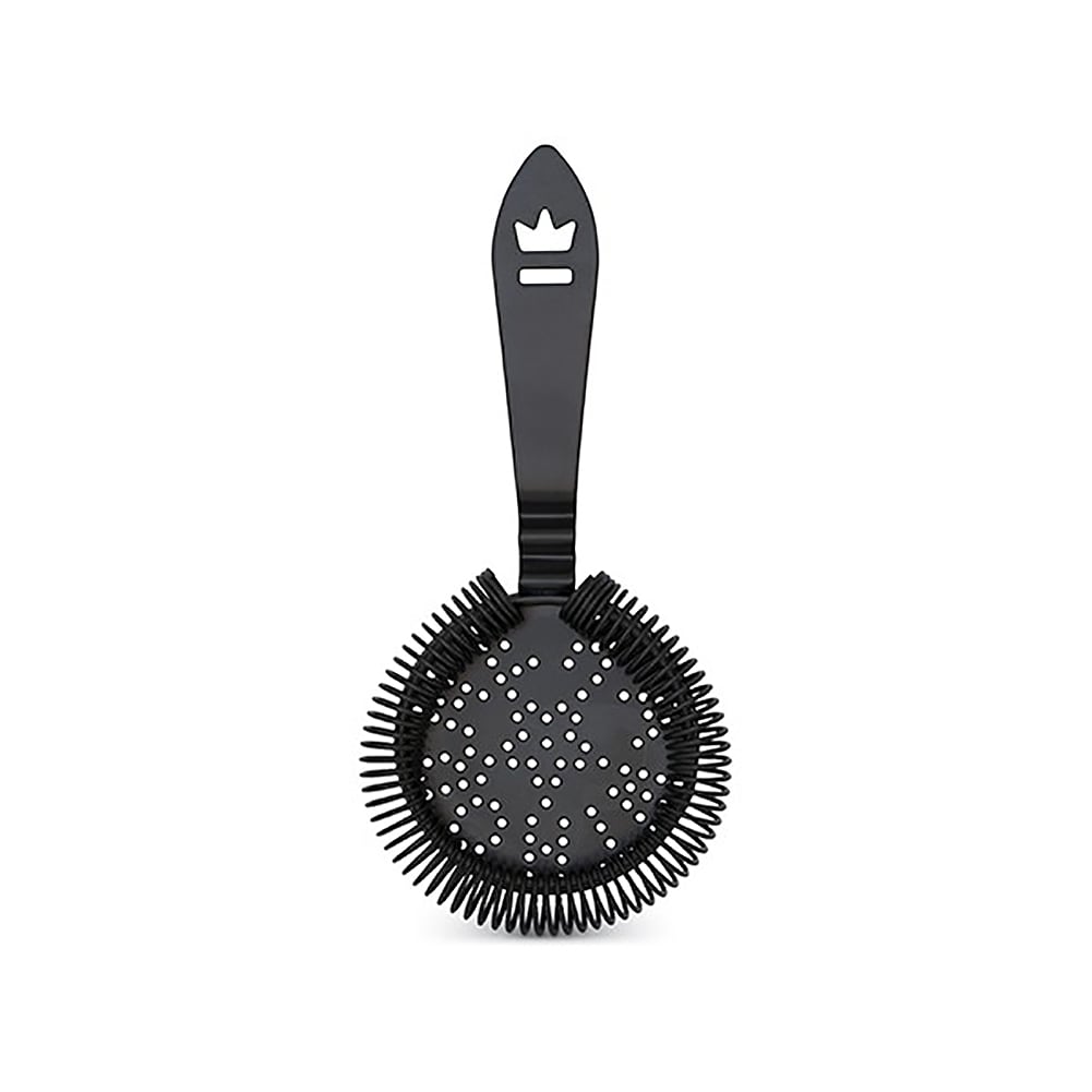 This strainer is based on a Hawthorne strainer that was patented in 1892. The corrugations at the base of the handle hooks onto the mixing glass or shaker rim to keep the strainer from slipping.