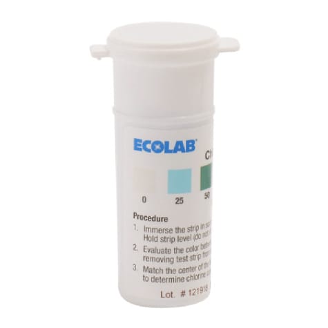 These chlorine test strips measure the concentration of free chlorine in sanitizing solutions. The color chart has matches at 0 to 300 ppm. Simply immerse the strip in sample and remove immediately. The hold the strip level (do not shake off excess sample). Match the center of the test strip pad to the color chart to determine chlorine concentration. These test strips measure free chlorine, not total chlorine.