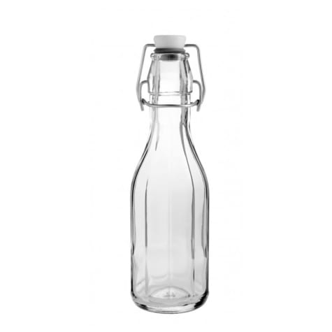 This 8.5 ounce (250 ML) swing top bottle is ideal for storing and serving dressings and beverages. The paneled bottle design provides an easy grip and vintage style. Swing top seal functionality is great for keeping beverages fresh.