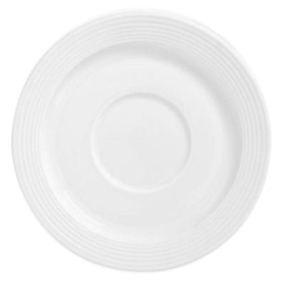 This stacking 5.75" saucer features the ridged rings and soft Aluma White® body of the Repetition shape.