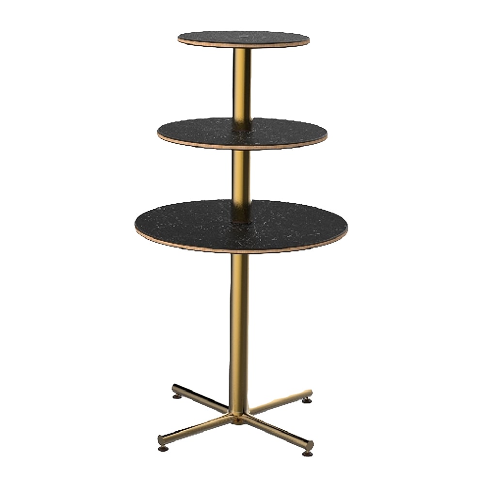 Impress your guests with this 3-tier round display table! Perfect for showing off your culinary creations at parties or gatherings.