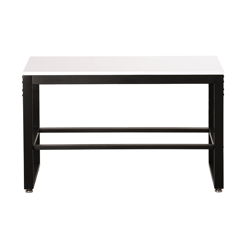 The Cal-Mil 22350-38-15 is a sleek merchandising table featuring a white composite top shelf and a sturdy black steel frame. Measuring 38" x 18" x 28", this table is perfect for creating attractive displays in retail or catering environments. It nests with other tables for a multi-level presentation and can be paired with a bottom shelf or casters (both sold separately) for added functionality.