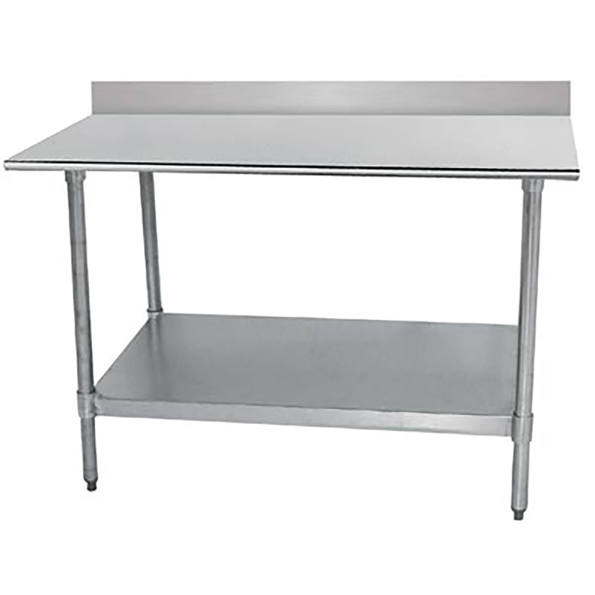 This 72" x 30" work table from Advance Tabco features an 18 gauge 430 stainless steel top with a rolled rim on the front and a 5" backsplash on the back.