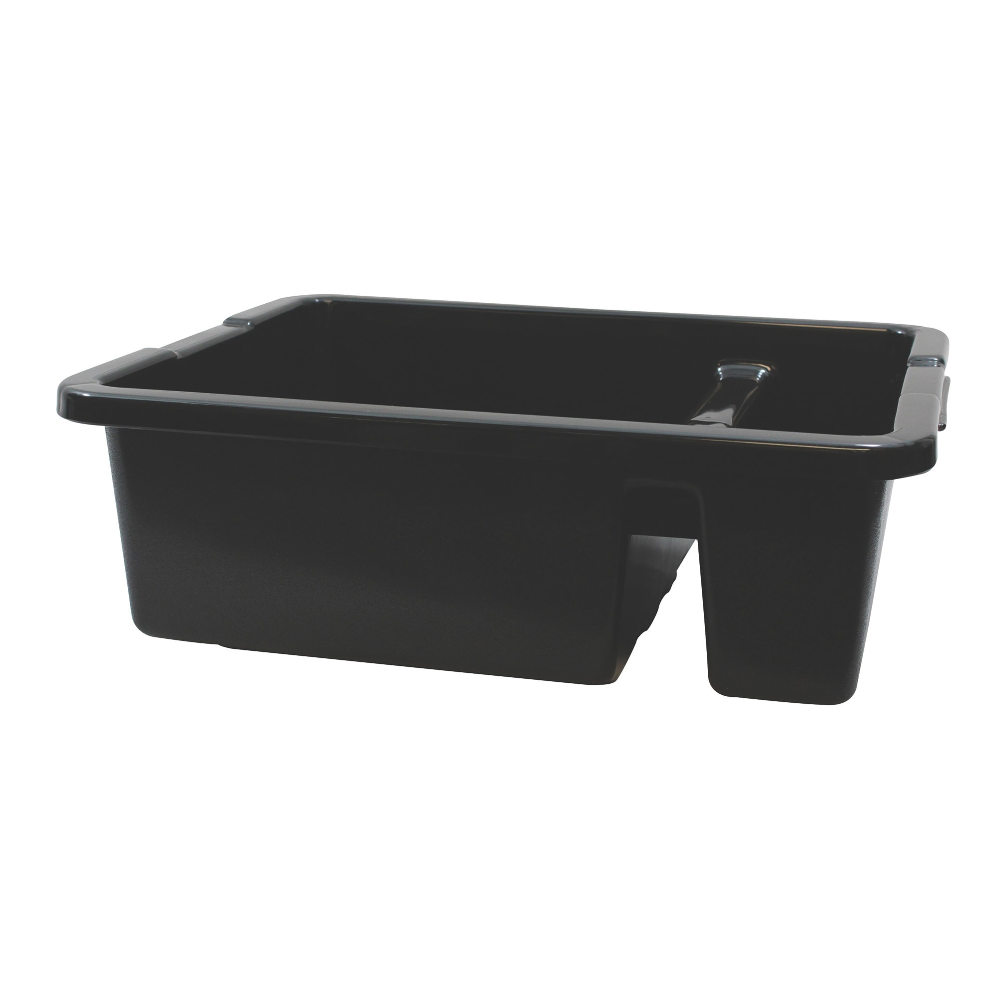 This TableCraft 1547BK divided bus tub is divided, so you can easily separate dirty flatware from dishes. It features heavy duty contoured handles for easy handling.
