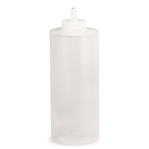 This TableCraft 32 ounce leak proof "soft" polyethylene gives perfect "flex" for fast prep. It is ideal for back of the house prep. This natural plastic 32 ounce squeeze bottle has a 38 mm opening.
