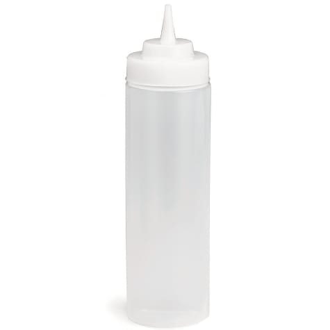 This TableCraft 11253C WideMouth standard tip 12 ounce natural squeeze bottle is made with clear soft polyethylene body for quick and easy prep and standard natural tip. It has a larger 53 mm opening for easy fill and easy clean.