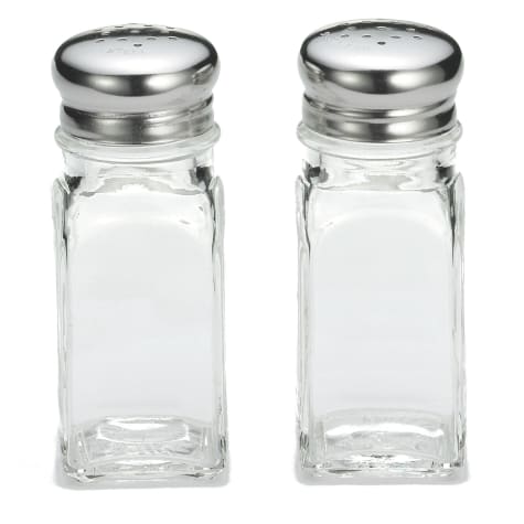This TableCraft salt & pepper shaker features a square glass body with a stainless steel mushroom shape top. Durable and attractive. Fits rack models 5457112R, 593RBK, 594C, 609R, and 609RBK.