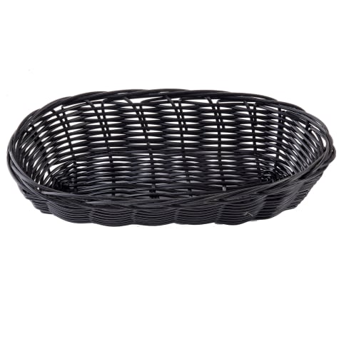 TableCraft 2417 oblong rattan basket is an elegant, attractive solution for serving fruits, breads, crackers, and other similar items. it's woven polypropylene cord construction is easy to clean with a damp cloth.