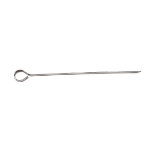 These 8" skewers are perfect for any commercial restaurant or kitchen. This skewer features an oval design for easy insertion and additional holding power. Made from stainless steel, it promotes faster cooking and cleans easily.