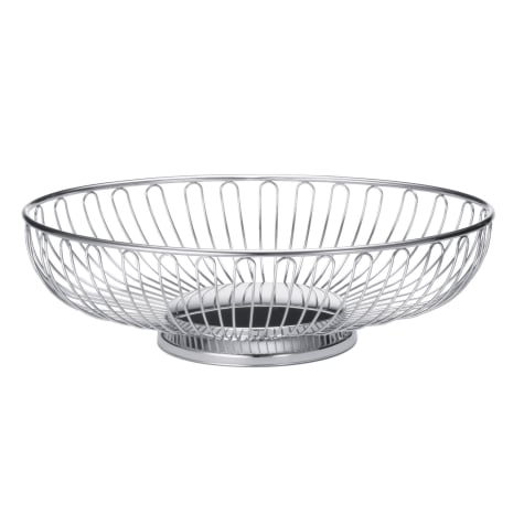 This TableCraft 4171 small, oval, chrome chalet basket is perfect for serving large servings of bread or dinner rolls or for display and storage of fruit. Hand Wash Only.