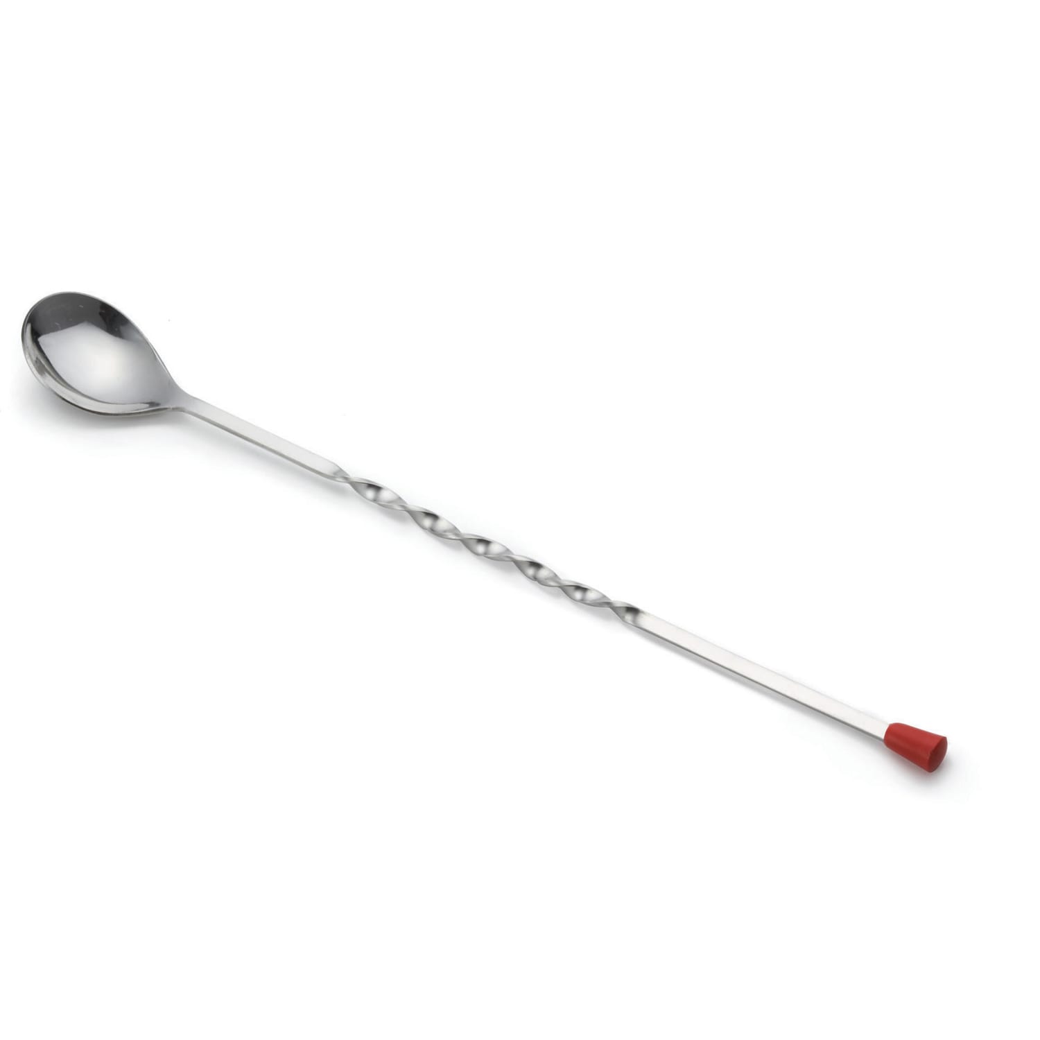 Not just a bar spoon! Though this spoon is the perfect length for stirring any mixed drink even in tall glasses, it's also great for use at the salad bar or ice cream bar. The red ball tip and twisted handle provide a sure grip.