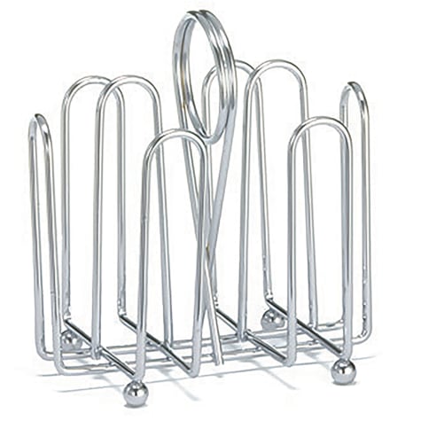 Constructed from chrome plated wire, the TableCraft 597C is a great way to offer jelly packets to your customers. With 4 slots to hold a variety of different jelly flavors, the rack will fit packets up to 2" x 1‐1/2"
