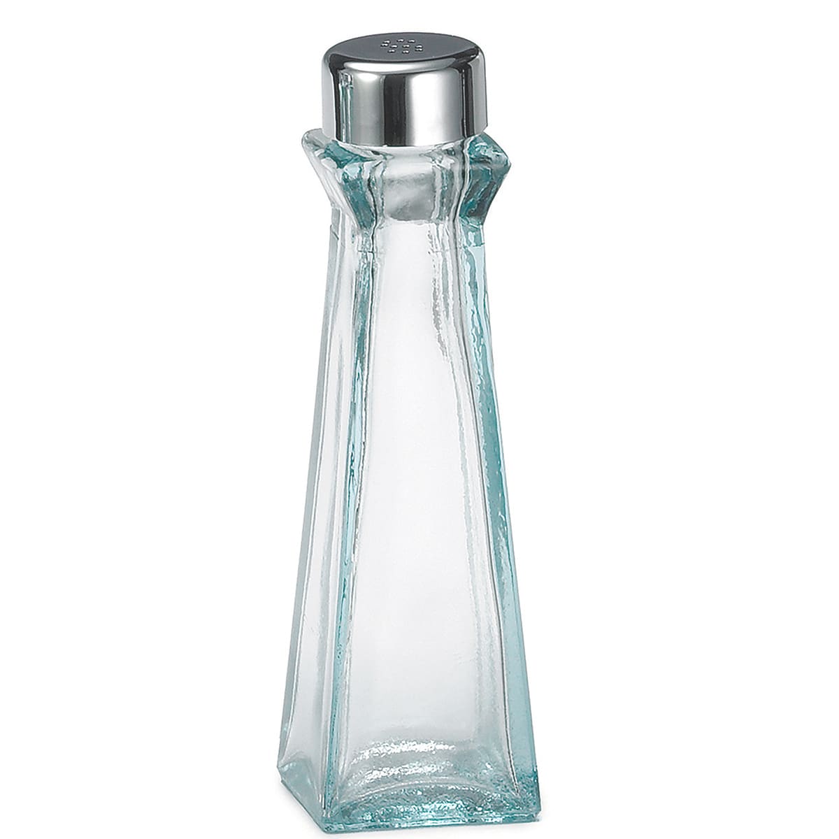 These 3 ounce Marbella salt and pepper shakers feature recycled green tinted glass with chrome plated ABS tops. Use with replacement top 837T.
