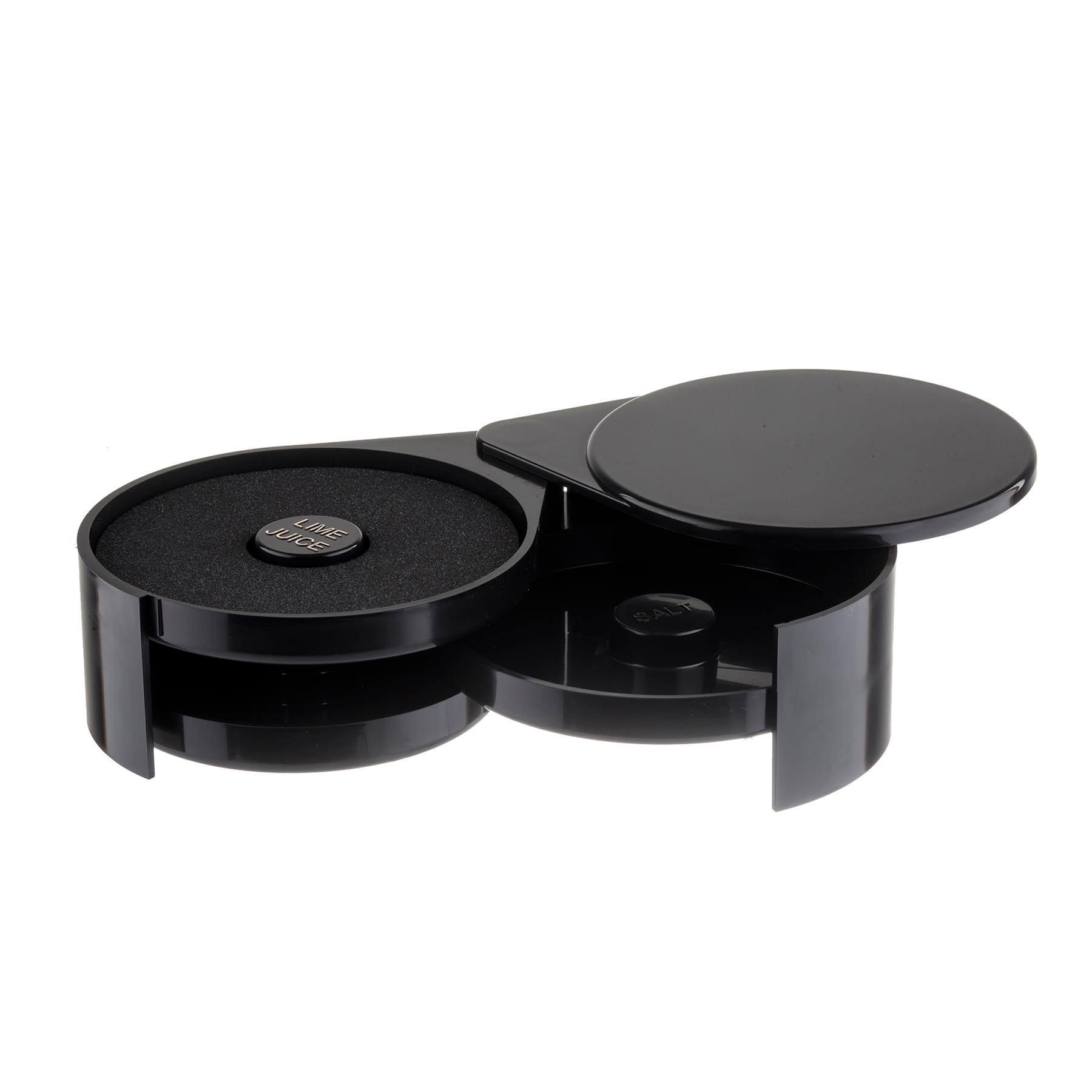 Prepare margaritas with ease using this TableCraft rimmer. Holds lime juice, salt and sugar, and the trays slide away for easy storage.