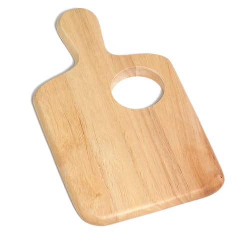 The TableCraft 79A provides a large area of bread preparation as well as tableside service. With its 2‐3/4" diameter insert, the board will be perfect for serving breads and cheeses with a variety of sauces. Tableside service has never been easier. The board measures 13" x 7‐3/4" and is made of wood with a natural finish. Due to the finish, this product would be hand wash only.