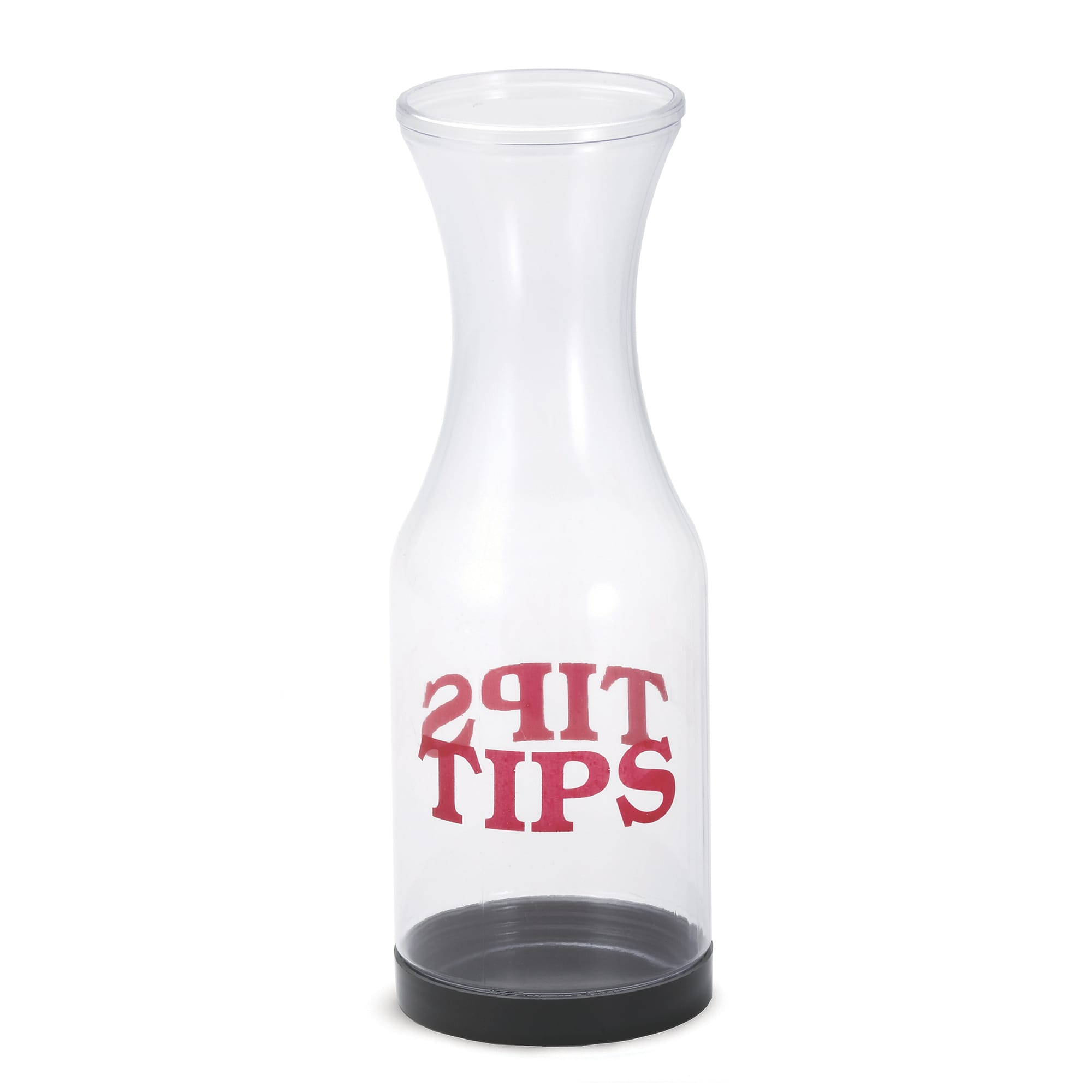 This clear plastic tip carafe has a easy open bottom which makes collecting tips quick and easy.