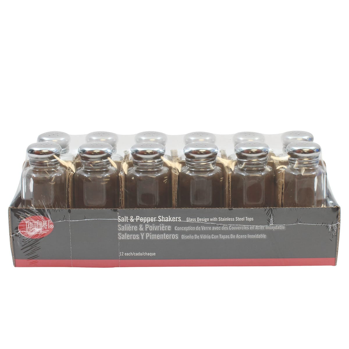 These TableCraft salt & pepper shakers hold 2 ounces each. They feature a paneled glass body with 18/8 stainless steel mushroom shape tops. Durable and attractive.