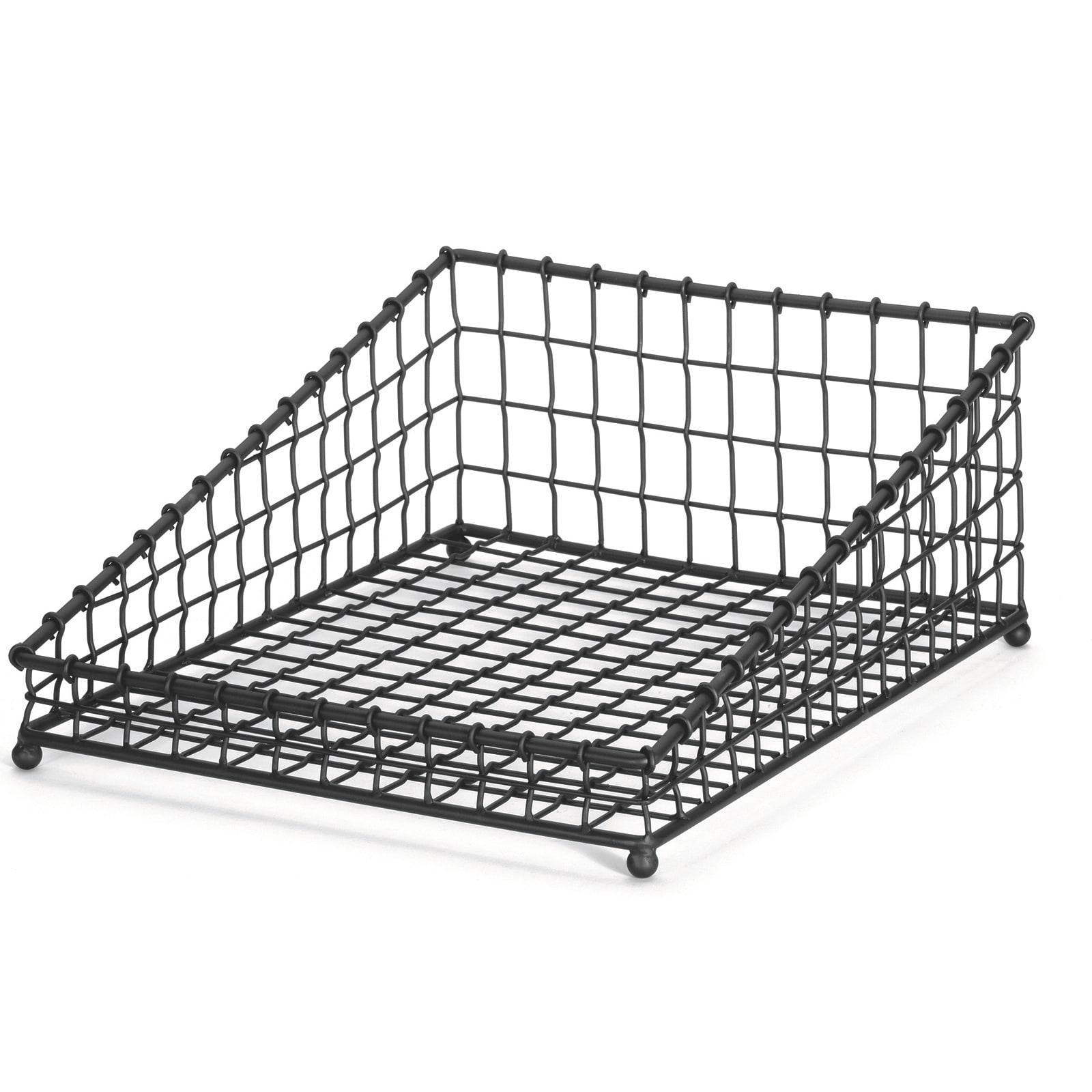 From the Grand Master Collection, the TableCraft GM1519 angled, rectangular wire basket is powder coated for a durable finish and sleek design. From the buffet to the tabletop, this modern angled wire basket provides trendy versatility for any application. You can use this basket to serve bread, bagels, pastries, or showcase napkins or decorative soaps and towels. Hand wash only.