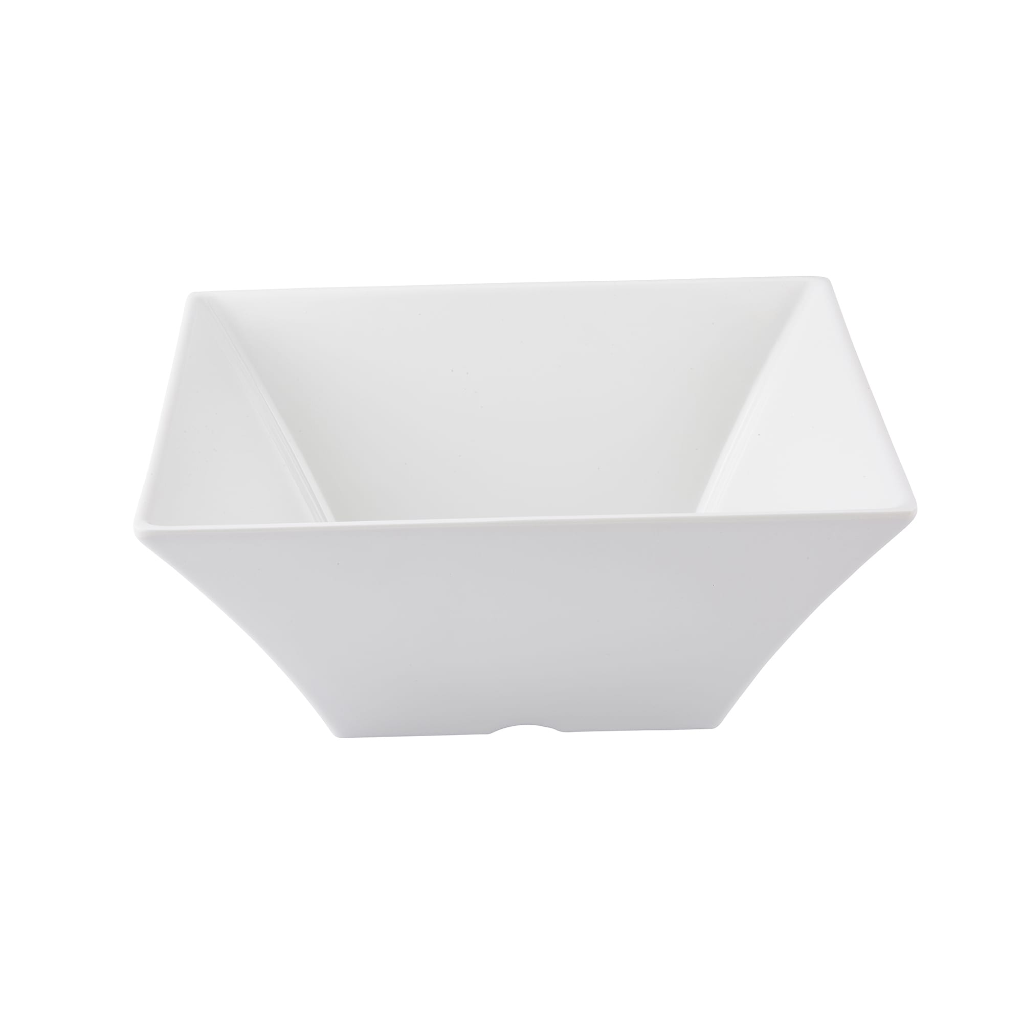 This white bowl from TableCraft is part of the Frostone Collection and is dishwasher safe. It is made from durable melamine material and is safe for temperatures up to 212°F/100°C. The square shape will add a modern look to any table setting and is perfect for restaurants or banquet facilities. Not recommended for microwave use.